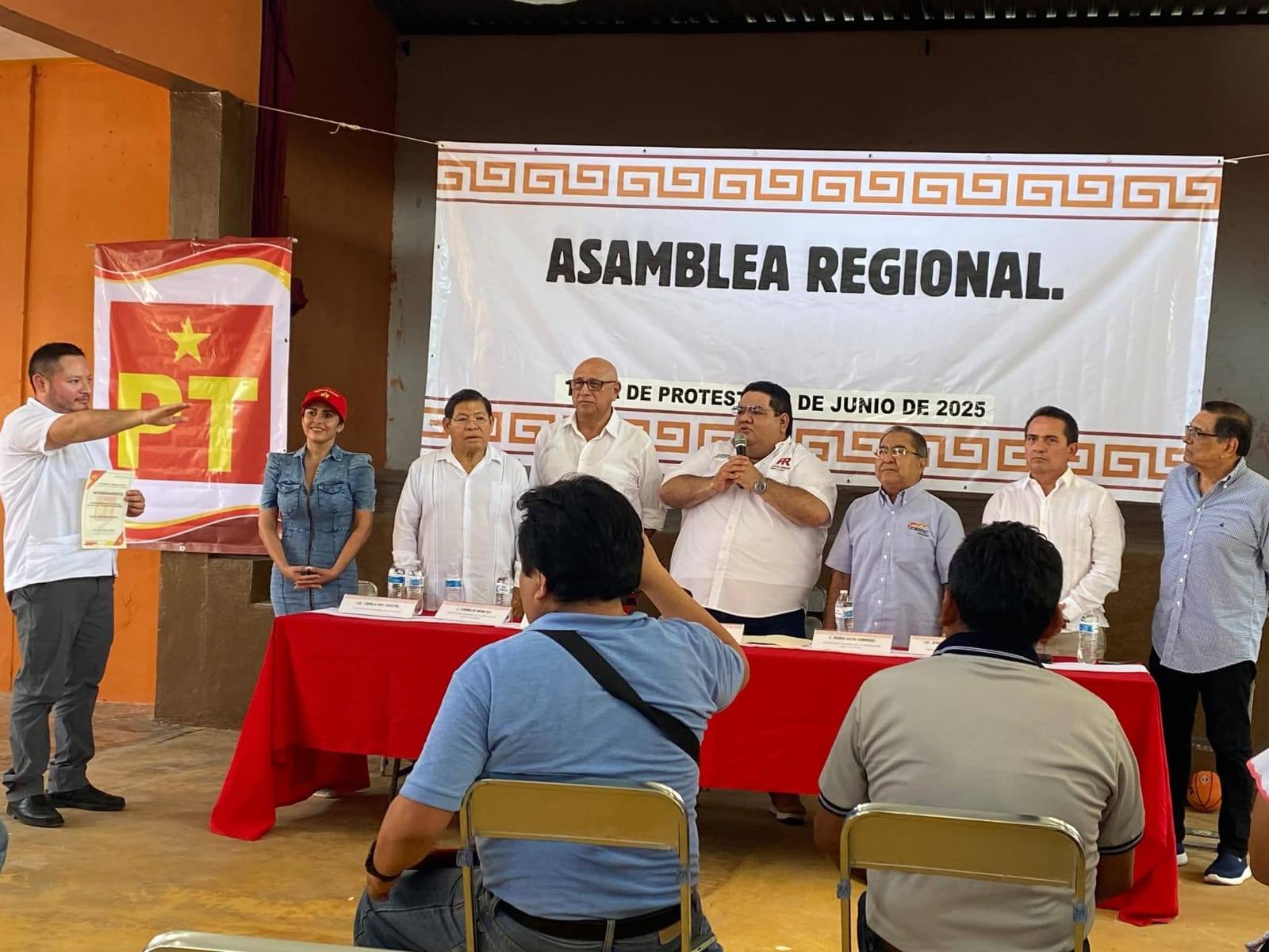 Maxcanú, Yucatán, 29 de junio de 2025.– Con el objetivo de abrir espacios políticos a liderazgos sindicales afiliados a la Confederación Revolucionaria de Obreros y Campesinos (CROC), el pasado domingo se firmó un convenio de trabajo marco entre dicha central obrera y el Partido del Trabajo (PT), acto en el cual se designó al licenciado David Mena Cauich como coordinador estatal del PT en Yucatán.