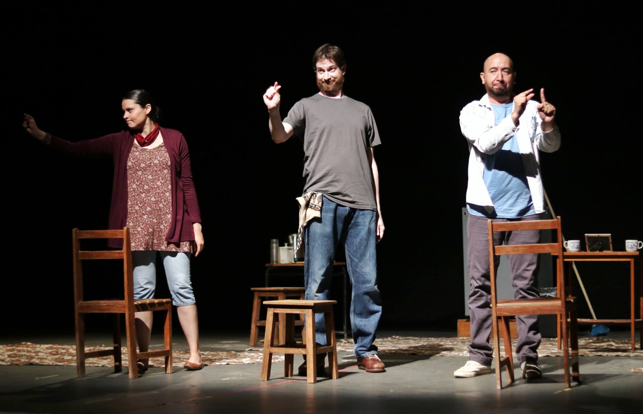 El elenco estuvo conformado por las y los actores sordos Socorro Casillas y Eduardo Domínguez, ambos maestros de lengua de señas, junto al actor oyente Sergio Bátiz, encargado de narrar las escenas y enlazar las tres historias que integran la obra: