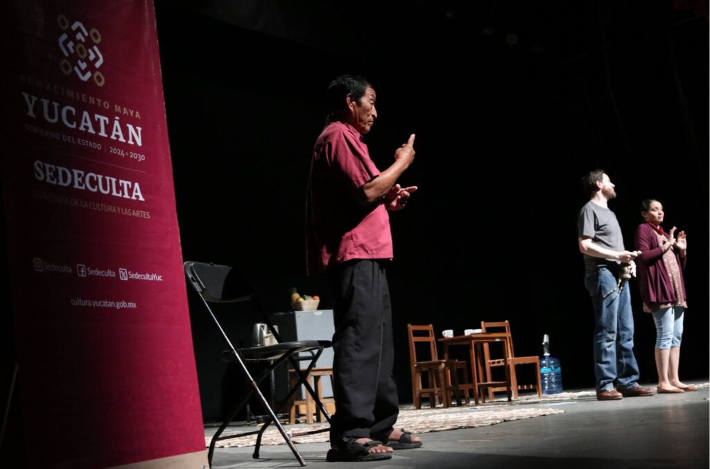 La presentación también incluyó interpretación en Lengua de Señas Maya Yucateca, realizada por Merly Isabel Collí Hau y Santos Audomaro Collí Collí, lo que enriqueció la experiencia y fortaleció la conexión con las comunidades mayas sordas del estado. El público reaccionó con emoción, compartiendo momentos de risas, lágrimas y reflexión.
