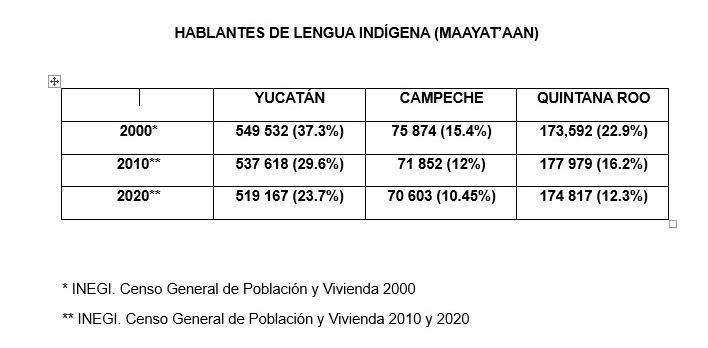 De acuerdo con el Censo General de Población y Vivienda del Instituto Nacional de Estadística y Geografía (INEGI), en el año 2000 Yucatán registraba 549 mil 532 hablantes de maya, lo que representaba el 37.3 por ciento de su población.