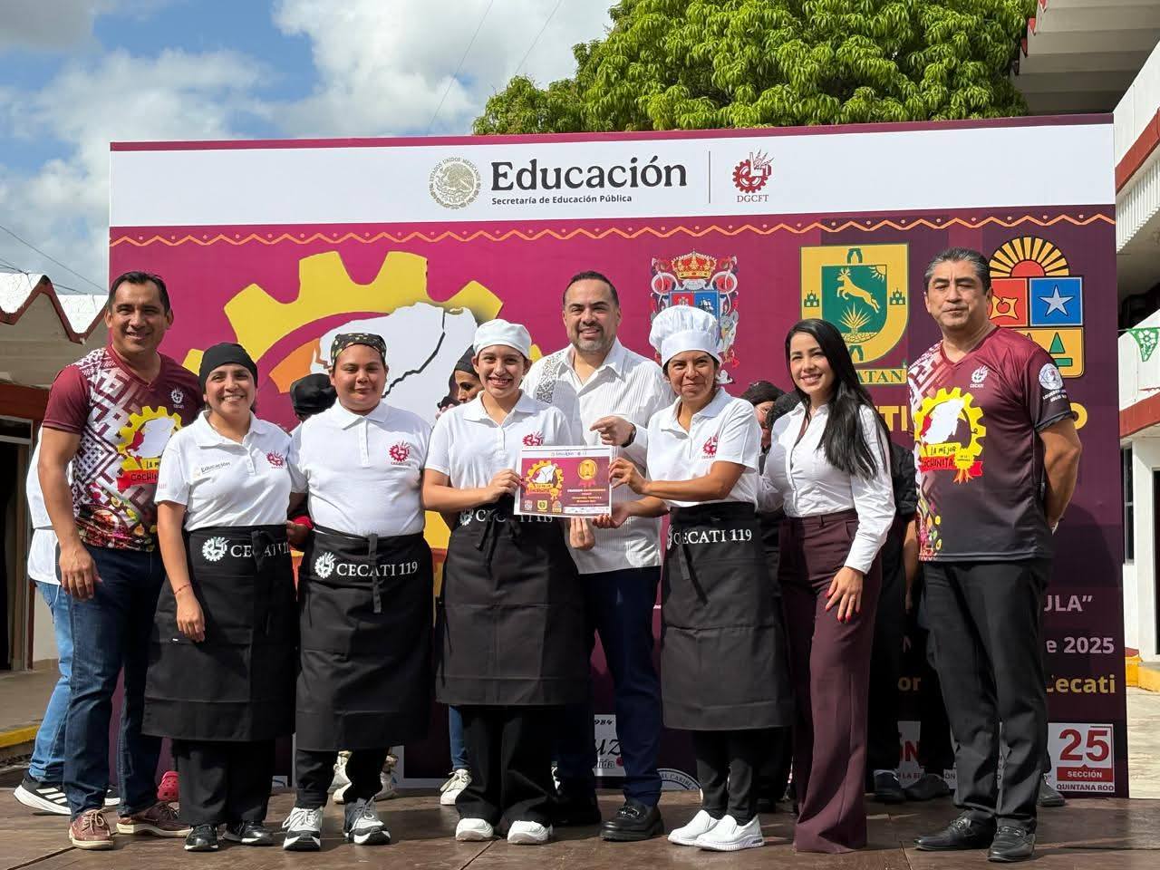 Con la presencia del Director General de los Centros de Formación para el Trabajo, Gonzalo Espina Miranda, se celebró en las instalaciones del Cecati 169 de Mérida el certamen gastronómico “La Mejor Cochinita de la Península”, donde el Plantel 119 de Cancún obtuvo el primer lugar gracias al talento y dedicación de una tercia de sus estudiantes.