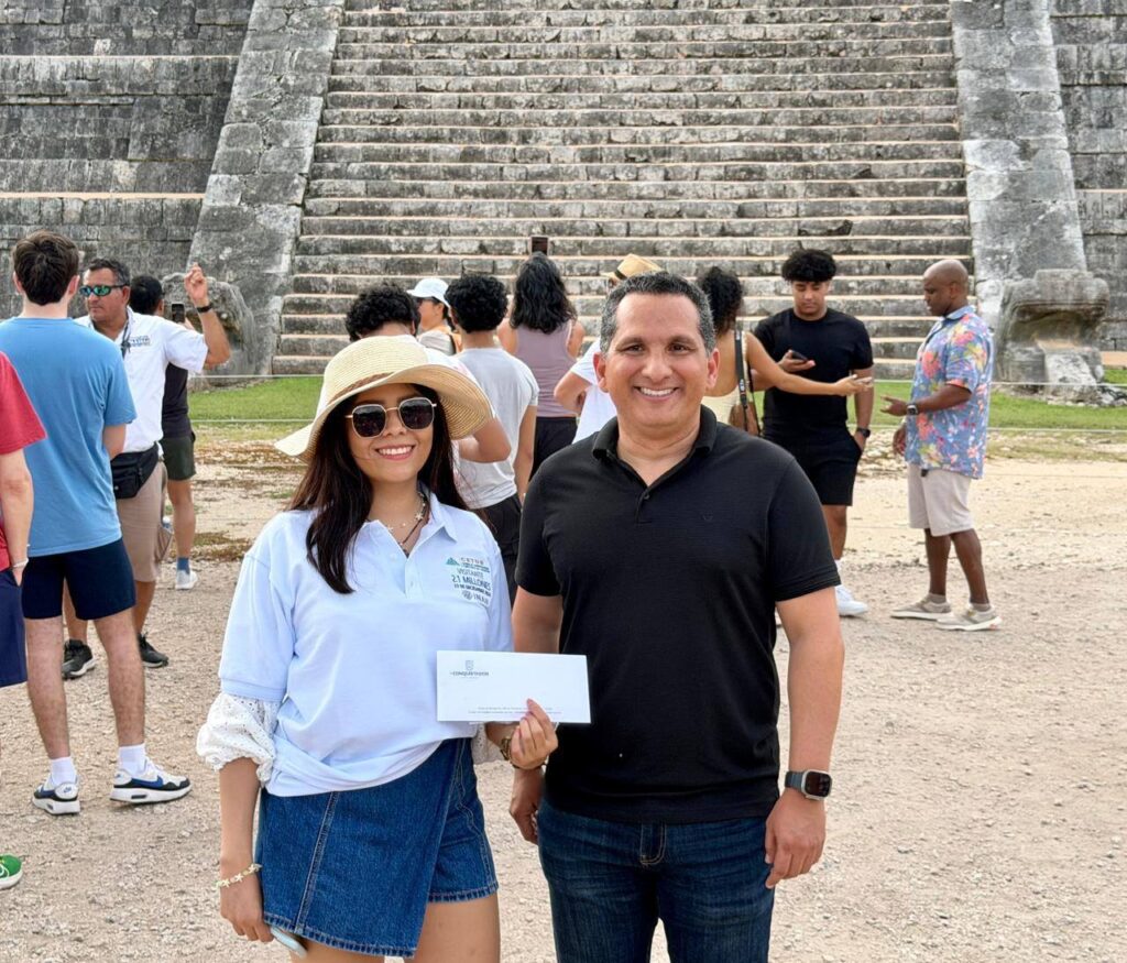 A unos días de finalizar el año, la zona arqueológica de Chichén Itzá registró a su visitante número 2.1 millones, cifra que reafirma su posición como el sitio arqueológico más visitado del país. El acontecimiento tuvo como protagonista a Dulce Guzmán Cortez, joven originaria de la Ciudad de México, quien fue recibida este martes en una jornada marcada por una alta afluencia de turismo nacional e internacional.