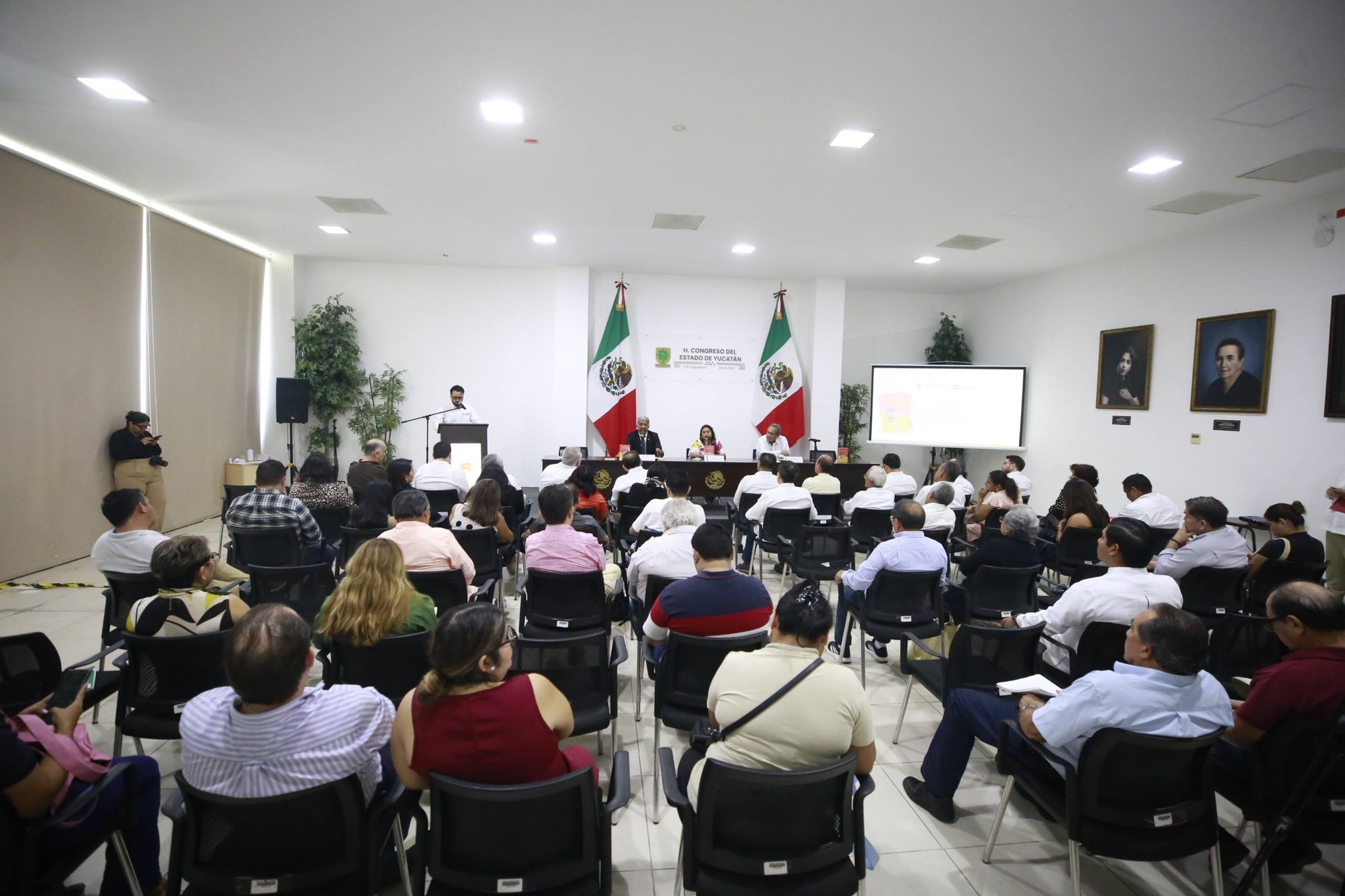En el presídium participaron el Dr. Miguel Moctezuma Longoria, autor de la obra; el Dr. Luis Felipe Esperón Villanueva, titular de la Oficina de Representación del Instituto Nacional de Migración en Yucatán; el Mtro. Hidalgo Victoria Maldonado, asesor legislativo e integrante del equipo jurídico del Colectivo de Federaciones y Organizaciones de Migrantes Mexicanos en Estados Unidos; la Lic. Martha Victoria Peña Cruz, jefa de Vinculación Internacional del Gobierno del Estado; y la diputada Neyda Pat Dzul. También estuvieron presentes los diputados locales Daniel González Quintal (morena) y Francisco Rosas Villavicencio (PT), así como el diputado federal Jorge Sánchez Reyes (morena).