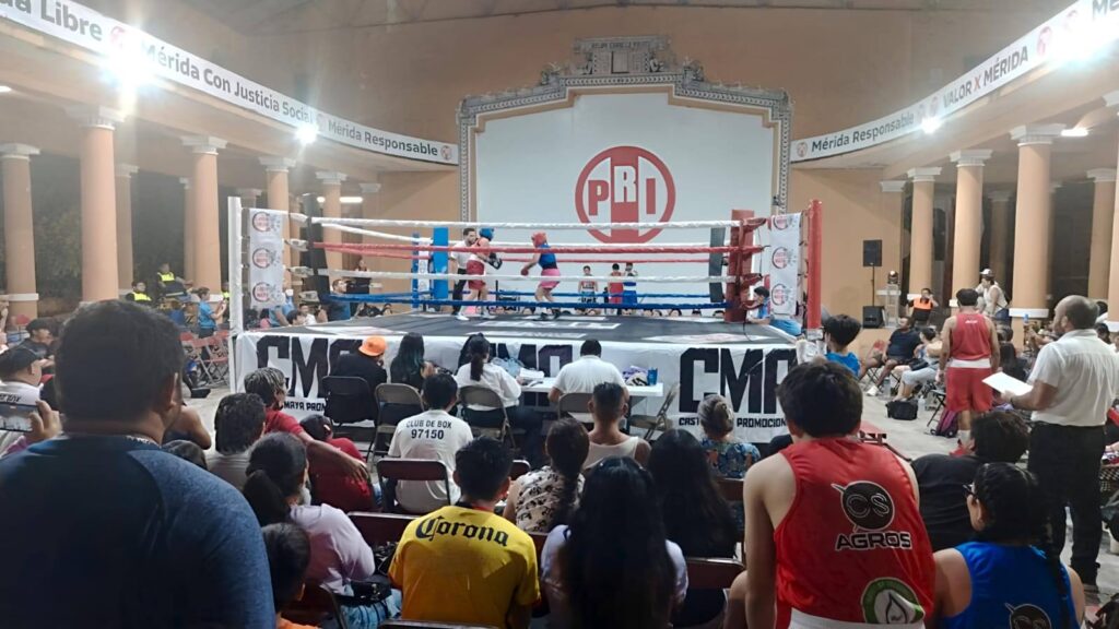 Por la noche, el teatro “Felipe Carrillo Puerto” se convirtió en un cuadrilátero para albergar la segunda función del torneo de boxeo amateur organizado por Casta Maya, con una cartelera de 20 combates que mantuvo al público al borde del asiento durante casi cuatro horas.