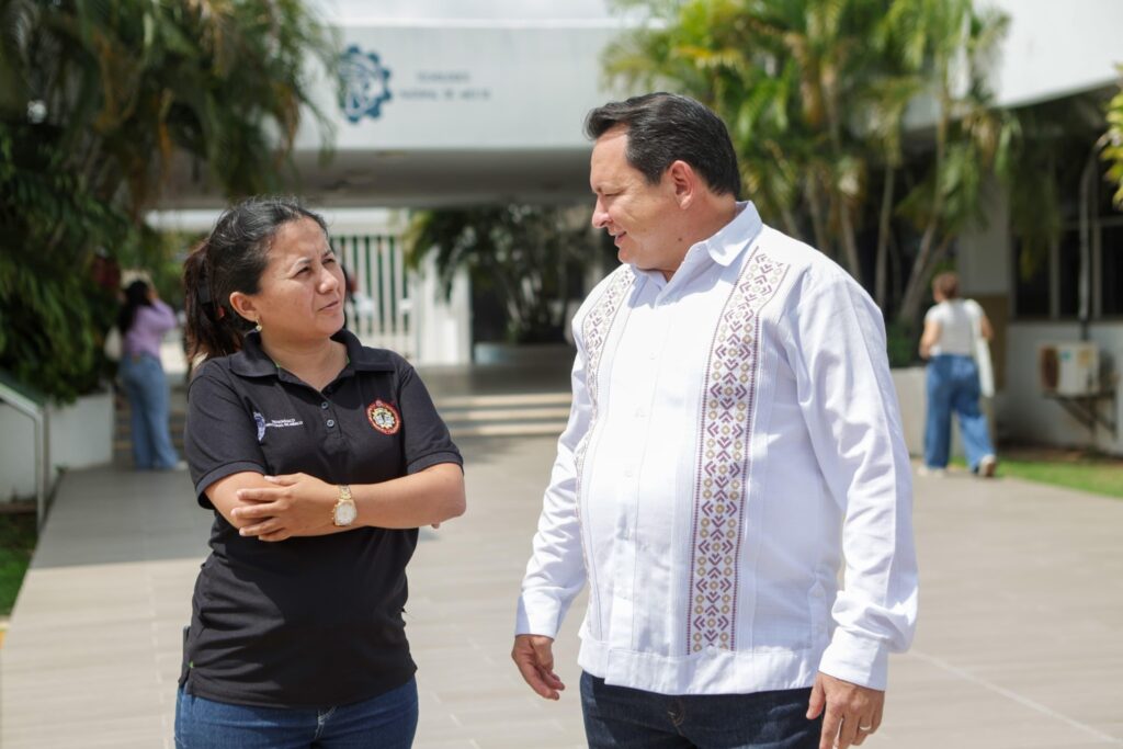 En el recorrido también estuvieron presentes la secretaria y subsecretaria de Bienestar, Fátima Perera Salazar y Adela Escamilla Acevedo, así como la subdirectora del Tecnológico de Mérida, Guillermina Peña Padilla.
