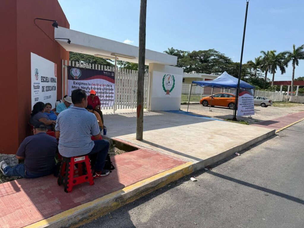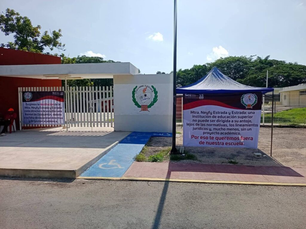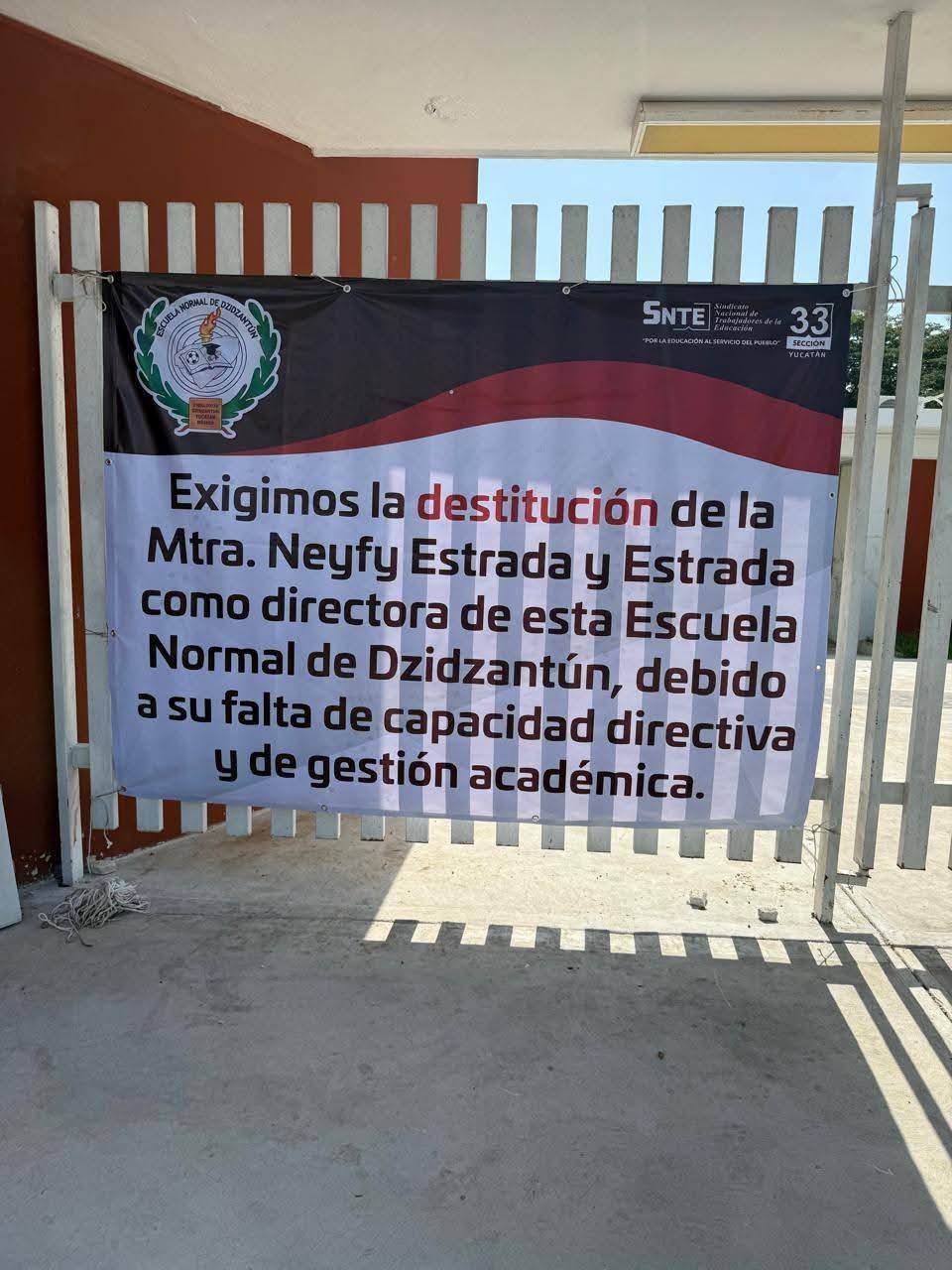 Dzidzantún, Yucatán, 28 de agosto de 2025.— Desde las primeras horas de este jueves, personal docente y administrativo de la Escuela Normal de Dzidzantún cerró las instalaciones del plantel en protesta contra la directora Neyfy Estrada Estrada, a quien acusan de prepotencia, malos tratos y de carecer de la capacidad para dirigir esta institución.