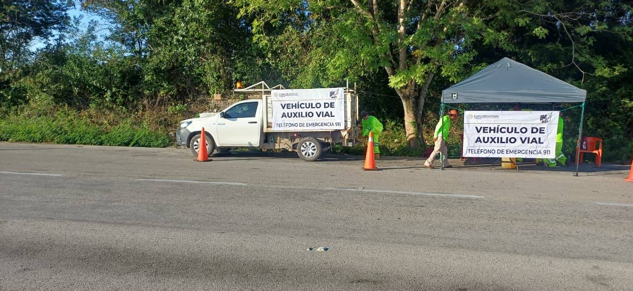 Asimismo, el Centro SICT Yucatán proporcionó cinco apoyos adicionales, entre ellos: dos servicios de abanderamiento para el cambio de llantas, dos apoyos mecánicos, dos orientaciones de información turística y un traslado para la compra de refacciones.