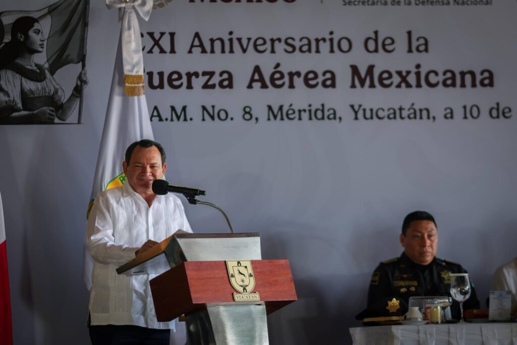 El gobernador de Yucatán, Joaquín Díaz Mena, presidió la ceremonia conmemorativa del CXI aniversario de la Fuerza Aérea Mexicana en la Base Aérea Militar número 8, donde reiteró el compromiso de su administración de trabajar de manera coordinada con las Fuerzas Armadas para mantener la paz, la seguridad y la atención oportuna de emergencias en el estado y en la región sureste del país.