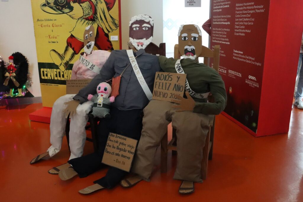 La exposición forma parte de las actividades conmemorativas por el 13 aniversario del museo y reafirma su papel como un espacio que visibiliza la vigencia y riqueza de la cultura maya contemporánea. Desde el inicio del recorrido, tres muñecos del Año Viejo reciben a las y los visitantes, marcando el tono festivo de esta muestra.