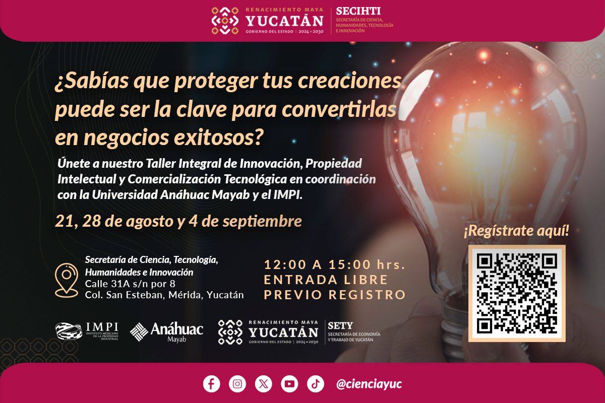 La Secretaría de Ciencia, Humanidades, Tecnología e Innovación (Secihti) de Yucatán impulsa el Taller Integral de Innovación, Propiedad Intelectual y Comercialización Tecnológica, con el objetivo de orientar a la comunidad científica, académica y empresarial en la protección de invenciones y el desarrollo de emprendimientos.