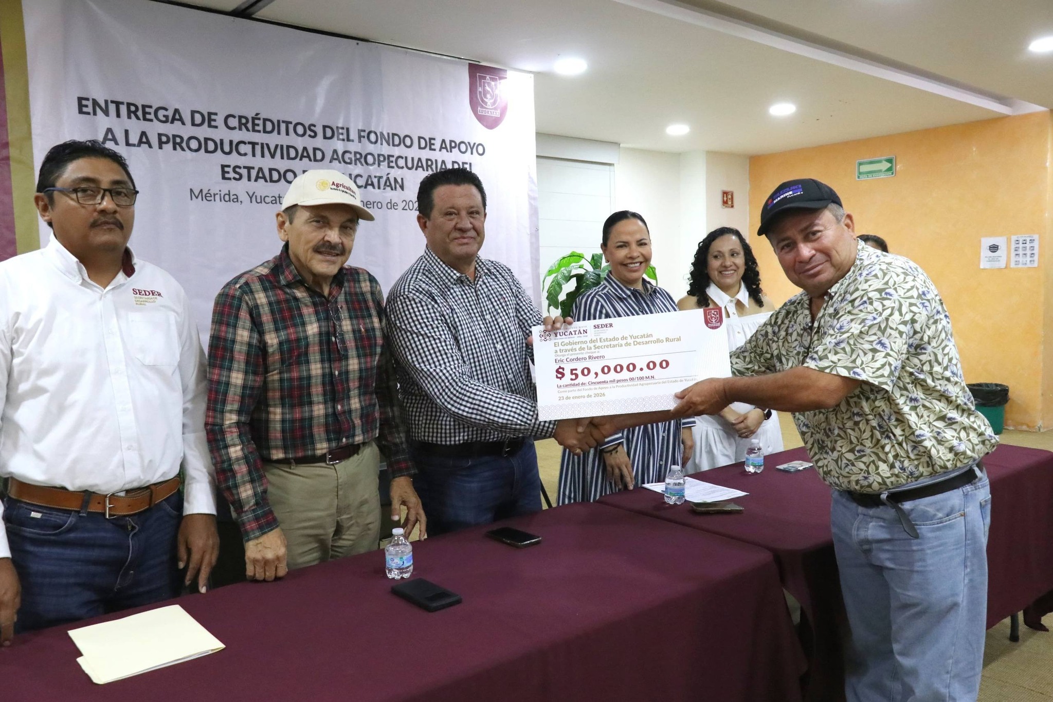 Con el objetivo de fortalecer la economía de las familias del sector rural y pesquero, el Gobierno del Estado, a través de la Secretaría de Desarrollo Rural (Seder), entregó créditos del Fondo de Apoyo a la Productividad Agropecuaria del Estado de Yucatán (Foproyuc) a 51 productoras y productores, como parte de una estrategia para impulsar el desarrollo sostenible y la productividad.
