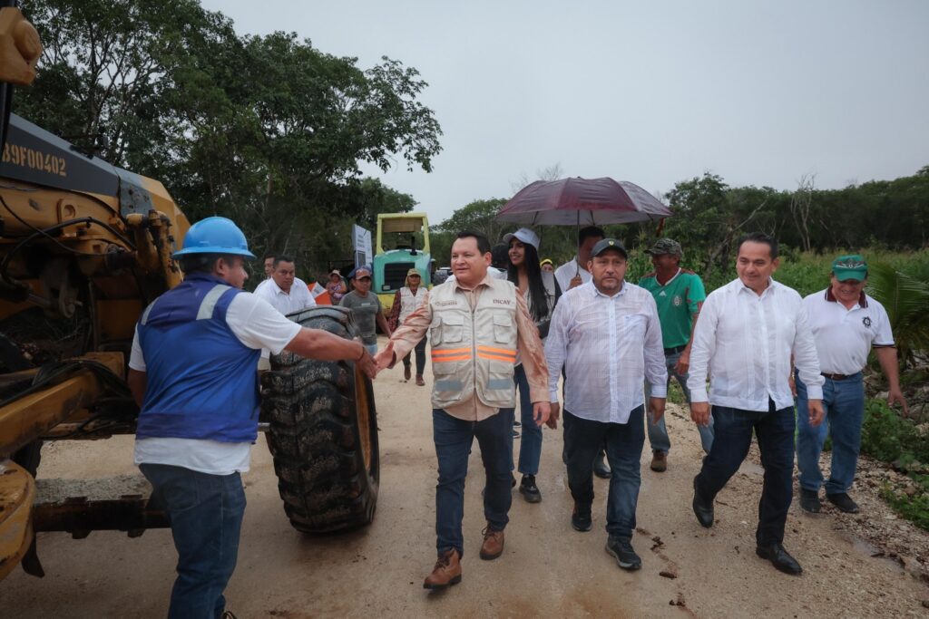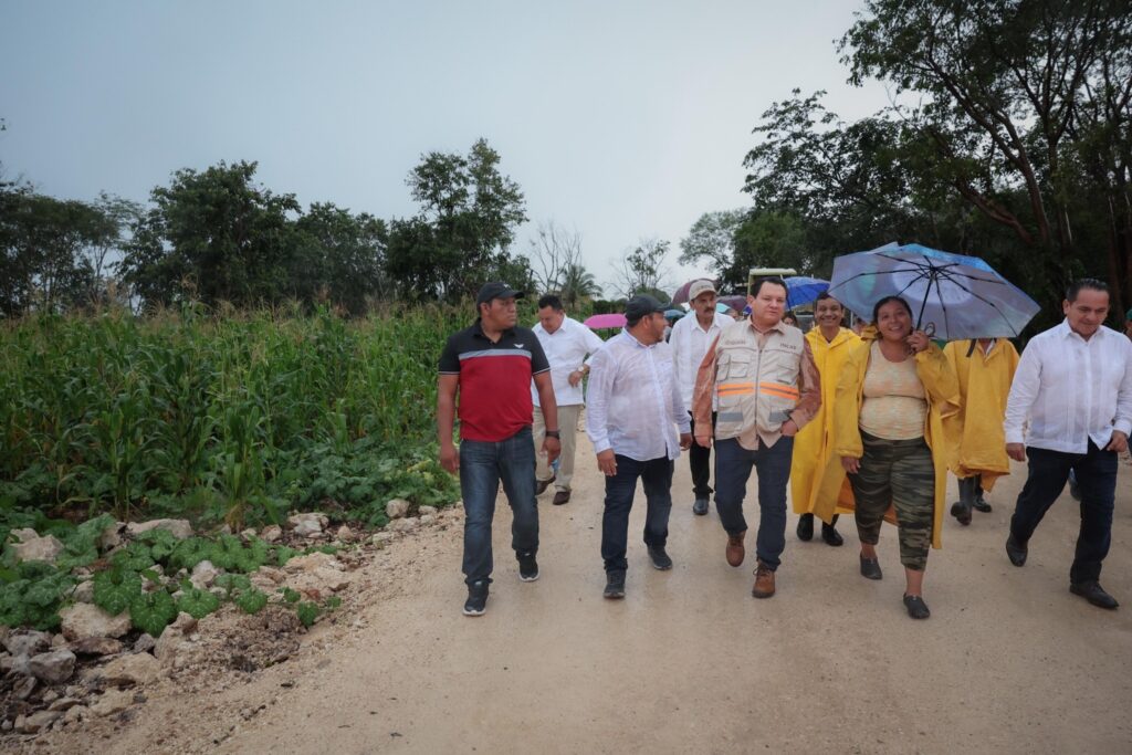 Samahil, Yucatán. – El Gobernador Joaquín Díaz Mena visitó la Unidad Productiva de Tedzidz, en el municipio de Samahil, donde puso en marcha un nuevo camino sacacosechas como parte del Programa Camino Sacacosechas, que integra la inversión histórica del Gobierno del Renacimiento Maya para fortalecer al campo yucateco.