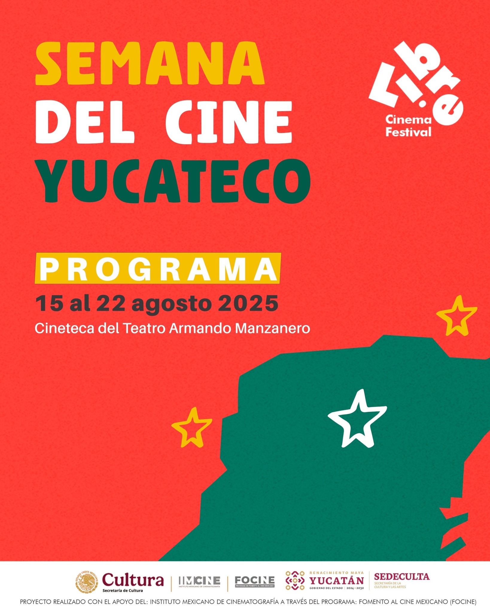 El evento, organizado por Libre Cinema Festival con el apoyo del Instituto Mexicano de Cinematografía (Imcine) y la Secretaría de la Cultura y las Artes de Yucatán (Sedeculta), se lleva a cabo en la Cineteca Manuel Barbachano Ponce, ubicada en el Teatro Armando Manzanero, y concluirá el 22 de agosto.