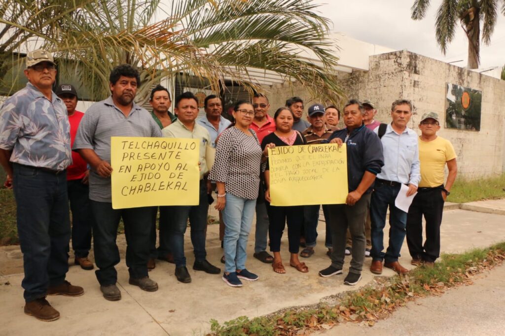 Para mostrar su solidaridad con los ejidatarios de Chablekal, el pasado lunes estuvo presente en el tribunal Agrario, Russell Gregorio García Ávila, el comisario de Telchaquillo y su directiva, quién manifestó que se encuentran en una situación similar respecto a la zona Arqueológica de Mayapán la cual mantienen cerrada desde el siete de noviembre del año pasado en espera de que se les pague por la expropiación, en este caso de 19 hectáreas de terreno, lo cual afirman deberá ocurrir en un solo pago.