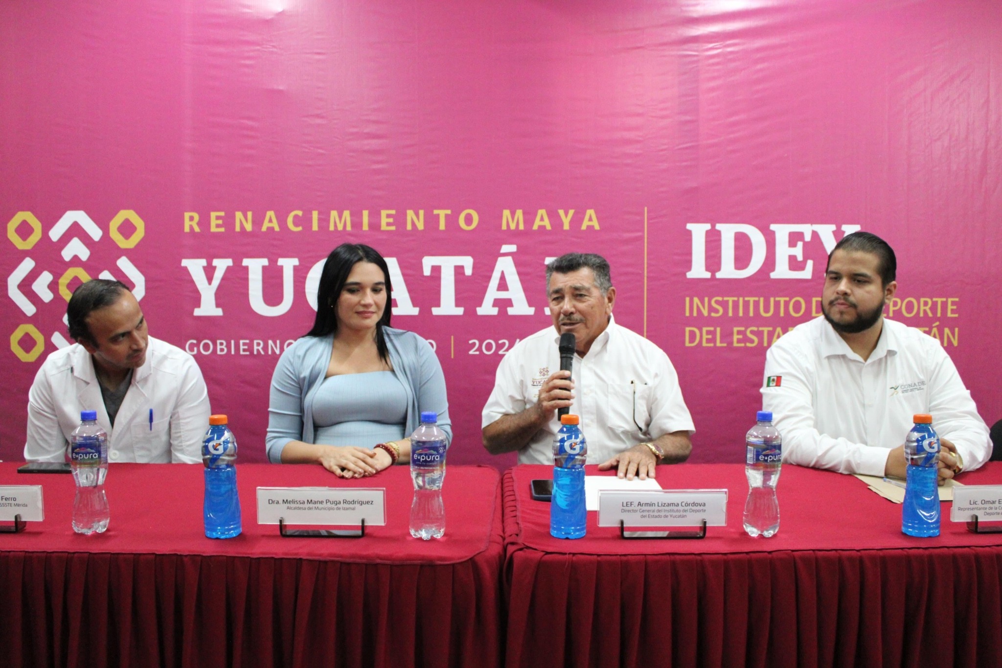 En la presentación oficial participaron el director del IDEY, Armín Lizama Córdova; la alcaldesa de Izamal, Melissa Puga Rodríguez; el director del Hospital Regional del Issste Mérida, Omar Bermúdez Ferro; el representante de la Conade en Yucatán, Omar Barquet Carbajal; el representante de Medical Care Corporativo, Francisco Sánchez Ruz, y el director de Promoción Deportiva del IDEY, Manuel Gil Acereto.