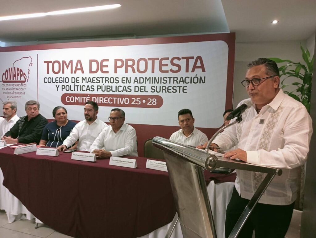 Al asumir la presidencia del Consejo Directivo 2025-2028 del Colegio de Maestros en Administración y Políticas Públicas del Sureste, A.C., el Dr. Felipe Alonzo Solís subrayó la urgencia de colocar la justicia social en el centro de las decisiones públicas, así como de fortalecer la ética y la preparación de quienes forman parte del servicio gubernamental.