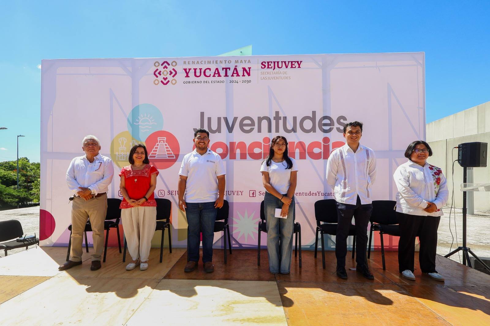 El acto fue encabezado por el titular de la Sejuvey, Alan Padrón Albornoz, acompañado por la secretaria de la Cultura y las Artes, Patricia Martín Briceño, y el coordinador del Telebachillerato Comunitario del Estado de Yucatán (Tbcey), Alberto Solís Cámara.