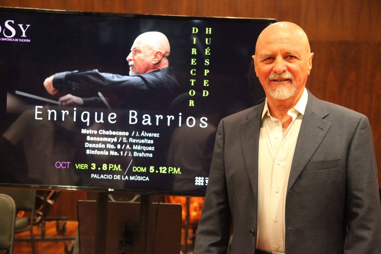 La batuta estará en manos del maestro Enrique Barrios, director huésped de ascendencia yucateca con una trayectoria de 38 años en la dirección de orquestas y óperas en 25 países. Su carrera ha sido reconocida con distinciones como la Medalla Yucatán y la Presea Gustav Mahler. A lo largo de su experiencia ha dirigido a más de 200 agrupaciones de prestigio, entre ellas la Sinfónica de Berlín y la Filarmónica Checa.