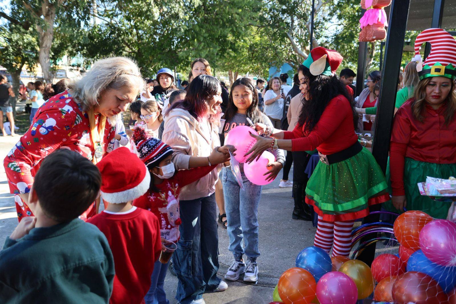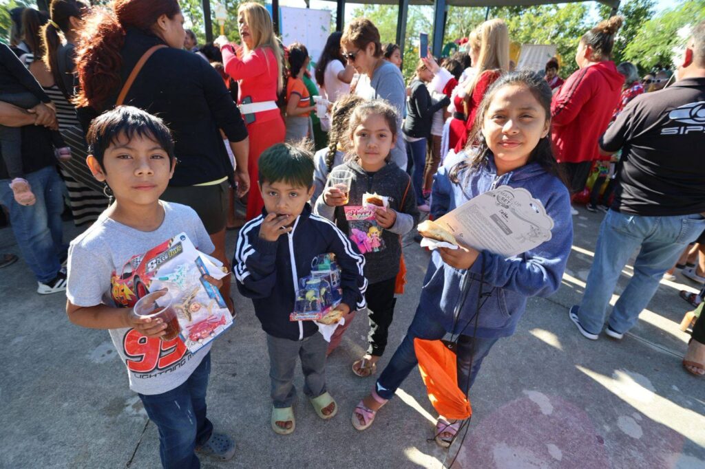 Durante el convivio, todos los niños presentes tuvieron la oportunidad de partir rosca, recibir juguetes y disfrutar de una vistosa presentación a cargo de las duendas, quienes estuvieron acompañadas de Mamá Clos, arrancando sonrisas y aplausos entre los asistentes. La celebración continuó con la esperada piñata, repleta de dulces que llenaron de emoción a los más pequeños.