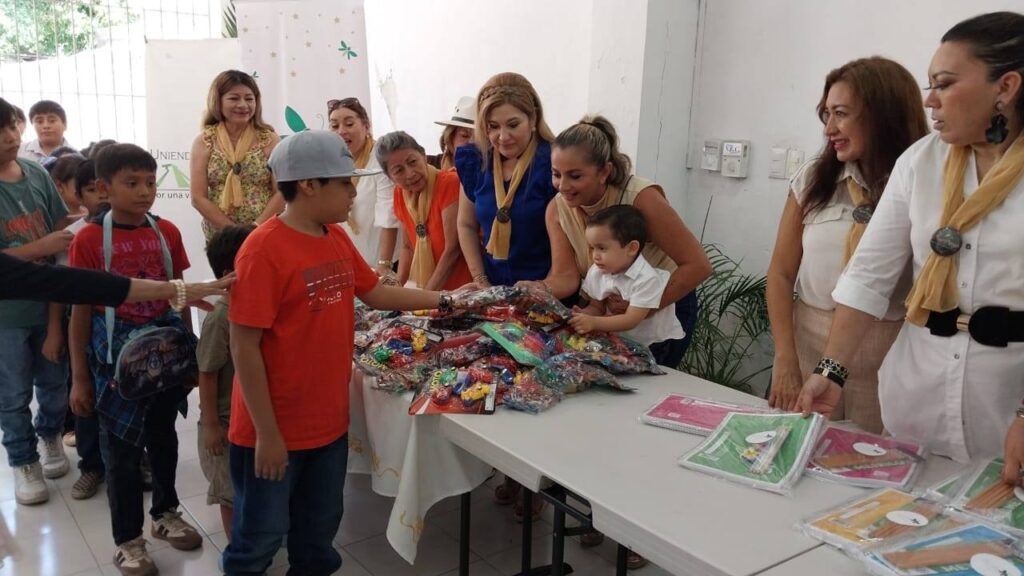Más de 70 niños del municipio de Timucuy y de la comisaría de Tekit de Regil fueron beneficiados con la entrega de apoyos escolares y juguetes, gracias a la labor altruista de las Luciérnagas Yucatán, encabezadas por su presidenta, la Dra. Celia Rivas Rodríguez.