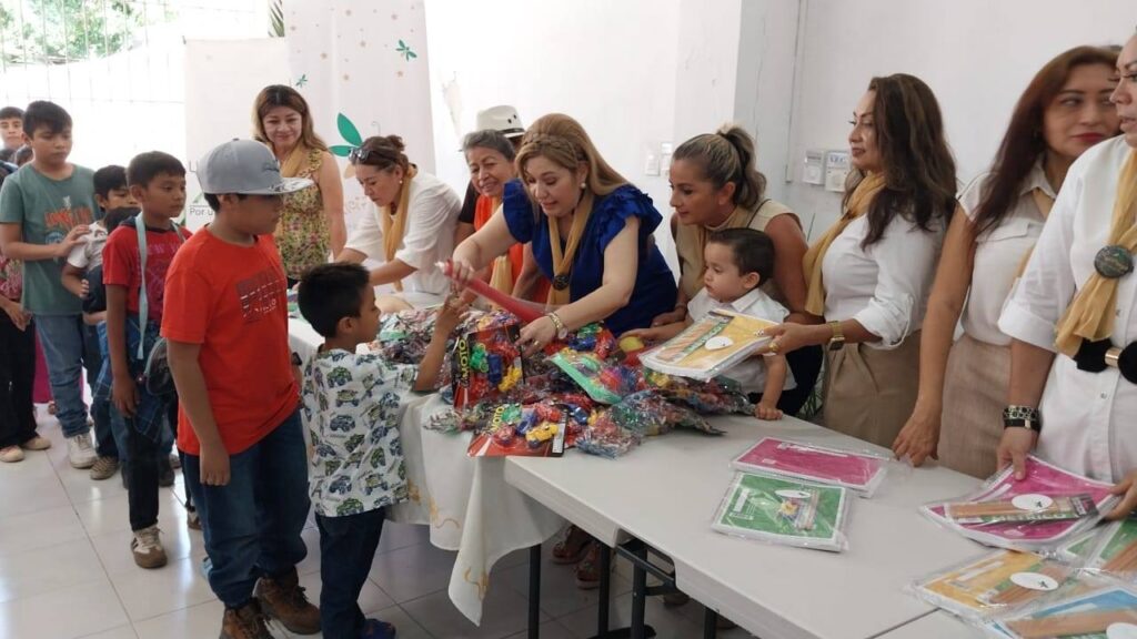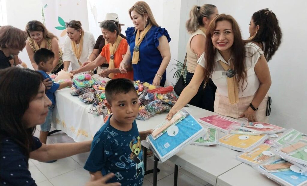 La jornada, realizada con el objetivo de apoyar la economía familiar ante el inicio del nuevo ciclo escolar, brindó a los niños en edad escolar un kit de útiles que incluyó libretas, lápices y bolígrafos, mientras que los más pequeños recibieron peluches de personajes de actualidad.