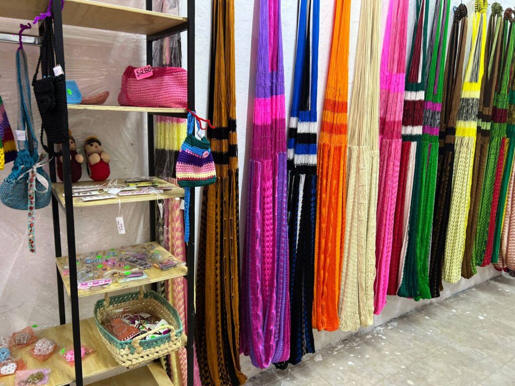 Los internos producen hamacas con diseños tradicionales y modelos especiales que incluyen figuras de sandía y pitaya, siendo esta última una de las favoritas entre los visitantes. Los precios van desde $1,550 hasta $4,500, siendo la hamaca de crochet la pieza más fina y de mayor costo. También ofrecen pulseras, aretes, hamaquitas decorativas, sillas tejidas, brazos de hamaca y monederos, todos elaborados dentro del Cereso.