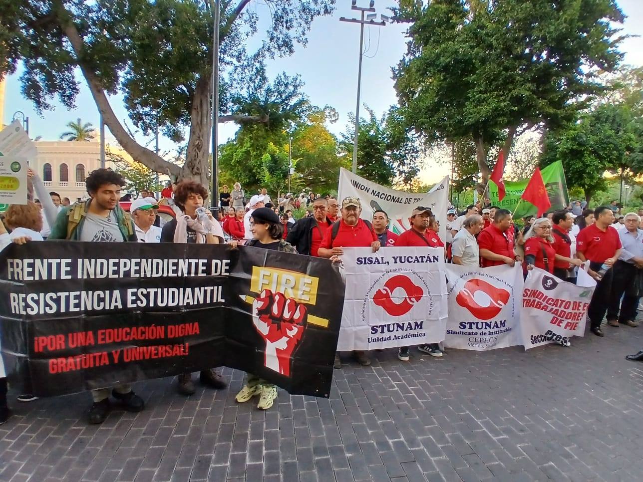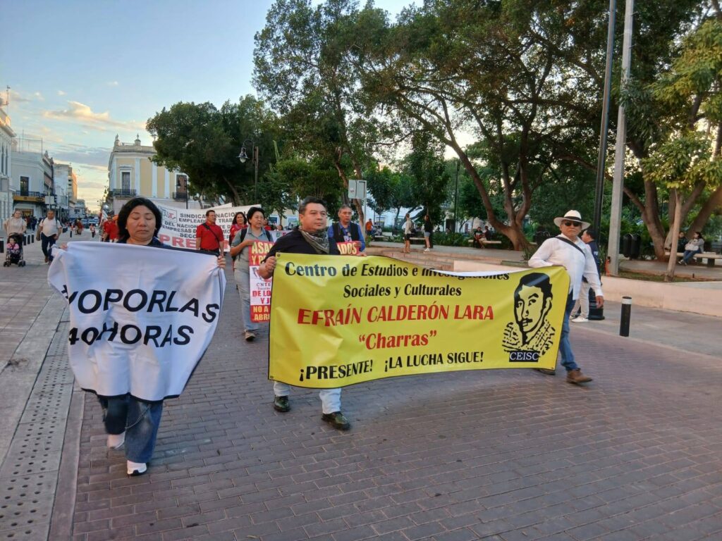 Mérida, Yucatán.— Más de mil trabajadoras y trabajadores pertenecientes a 30 organizaciones afiliadas a la Unión Nacional de Trabajadores (UNT) y a la Asociación General de las y los Trabajadores (AGT) participaron en la Jornada Nacional de Lucha realizada en la capital yucateca.