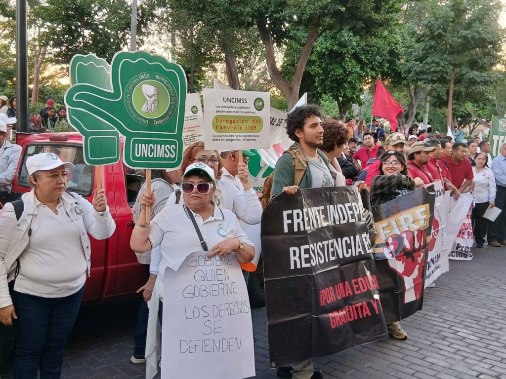 Previo al arranque de la movilización, Miguel Ángel Puigserver Nic, secretario general de la Sección 29 del Sindicato de Telefonistas, explicó que tradicionalmente esta marcha se efectúa cada 31 de enero; sin embargo, en esta ocasión se adelantó debido a que ese día la Coordinadora Nacional de Trabajadores de la Educación (CNTE) realizará una movilización a nivel nacional.