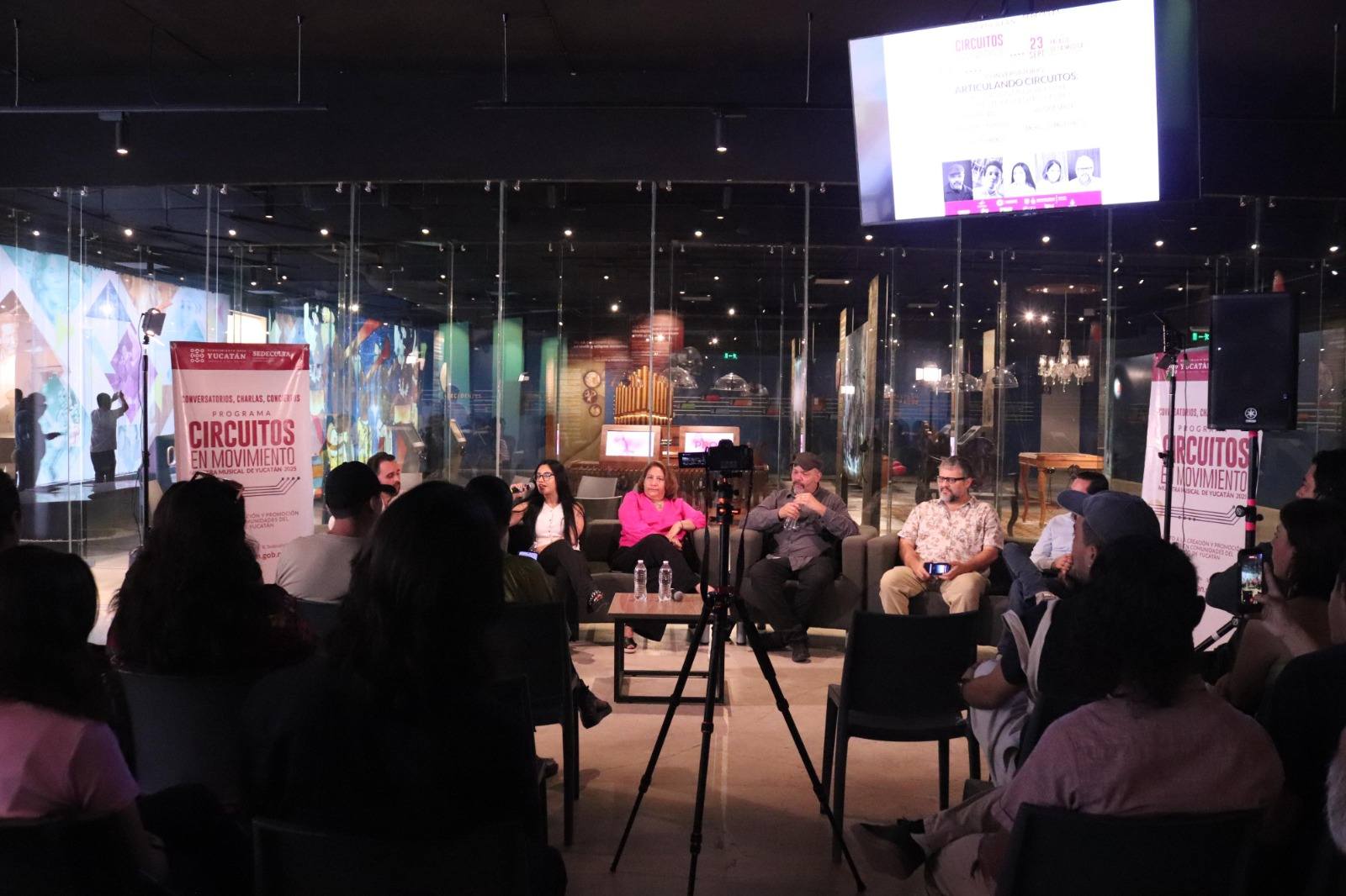 Durante la primera jornada, artistas y especialistas participaron en el conversatorio “Articulando circuitos: Circulación musical entre el sureste y el centro del país”, donde se reflexionó sobre la necesidad de crear redes que fortalezcan la movilidad de los proyectos musicales. Gerry Rosado calificó a Circuitos en Movimiento como un esfuerzo “muy relevante” para la circulación regional, mientras que Itzel Ruiz subrayó que abre la posibilidad de sinergias entre instituciones de distintos niveles.