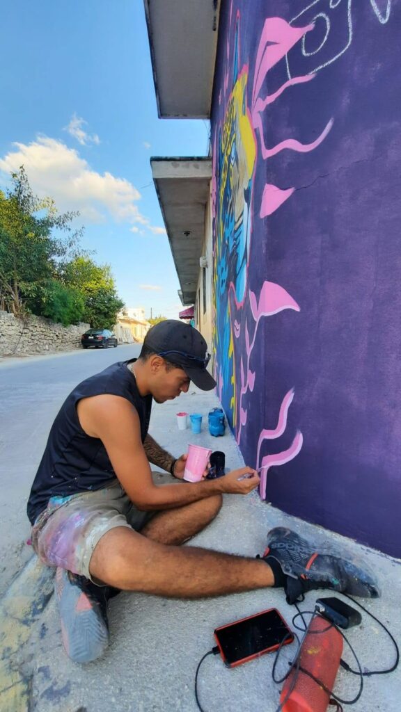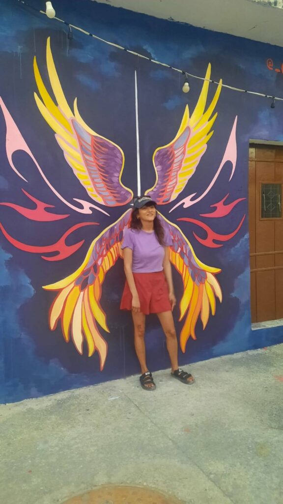 Por su parte, Odasis plasmó un mural compuesto por unas alas angelicales que, de manera simbólica, envuelven y protegen al pueblo frente a los procesos de transformación social y territorial que atraviesa.