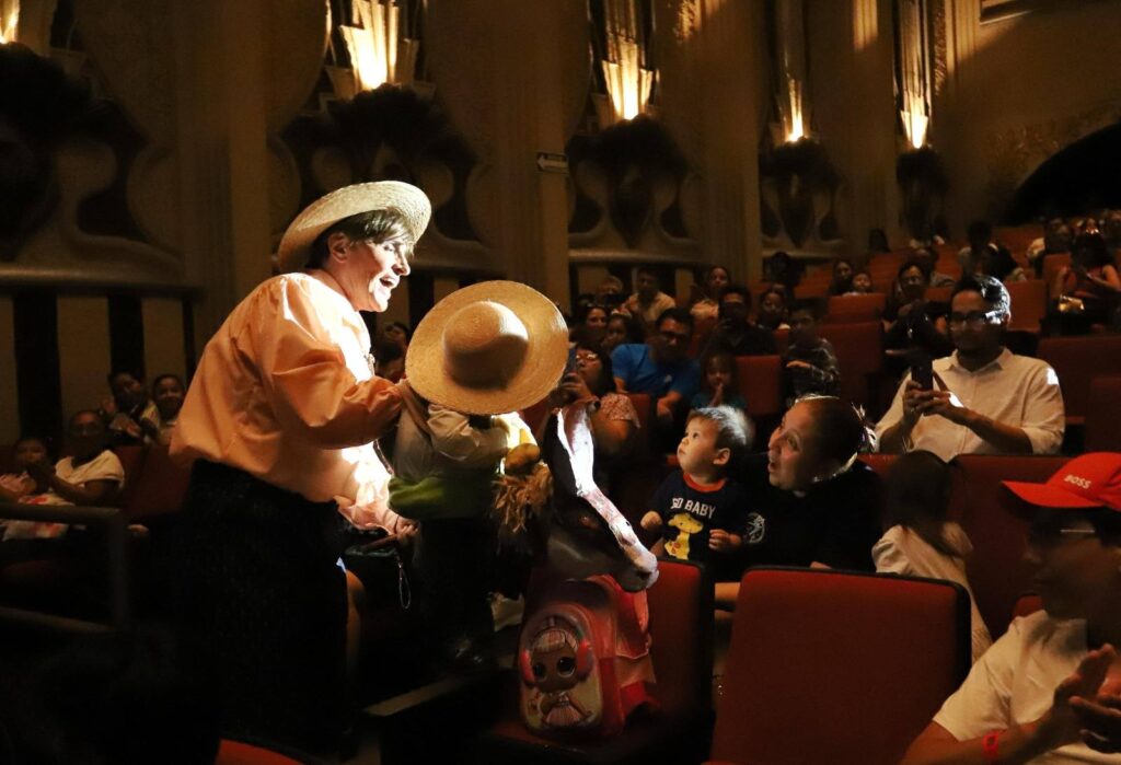 Mérida, Yucatán, a 22 de agosto.– El Teatro Armando Manzanero fue escenario de una tarde mágica en la que niñas, niños y familias yucatecas disfrutaron la puesta en escena “¿Qué me cuentas, Don Quijote?”, interpretada por el reconocido actor y cuentacuentos Mario Iván Martínez, en una función gratuita organizada por la Secretaría de la Cultura y las Artes (Sedeculta).
