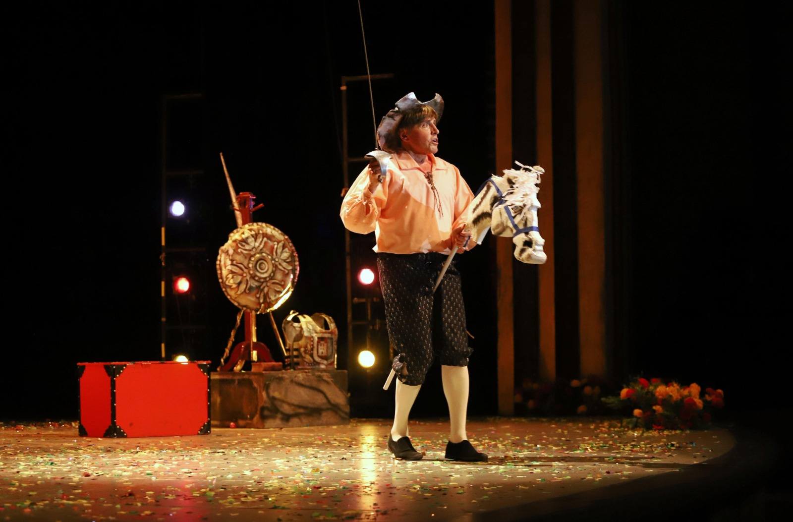 El espectáculo estuvo conformado por una selección de pasajes del texto original, cuyo lenguaje cervantino fue adaptado para que niñas, niños y jóvenes comprendieran mejor los diálogos y las aventuras del “Ingenioso Hidalgo” Don Quijote de la Mancha y su fiel escudero Sancho Panza.