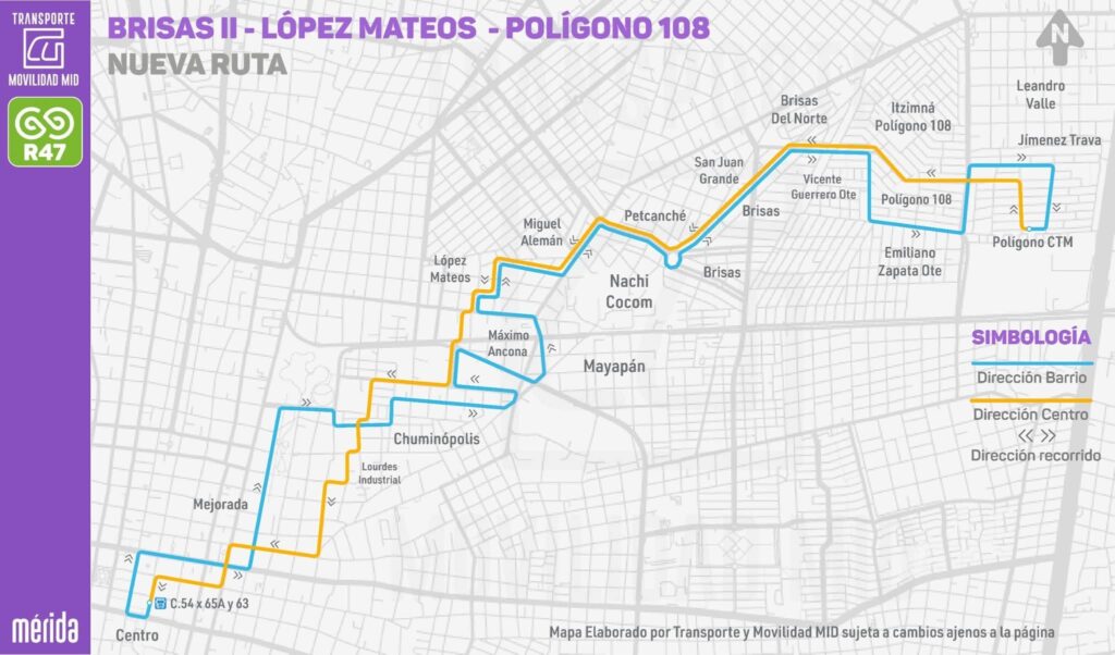 👉🏼Esta ruta dará servicio a la zona oriente de Mérida, cruzando por sitios estratégicos como la Prepa 1 de la UADY, el hospital Regional IMSS T1, Plaza Patio, así como por colonias como Fenix, Industrial , López Mateos, Brisas , Polígono 108, entre otras más.
