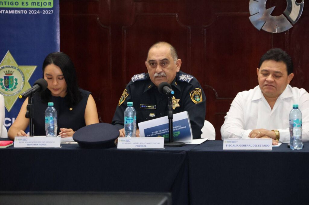 En su intervención, el comisario Rafael Jesús Chaires Cuevas informó que ya se están ejecutando varias de estas acciones, como el incremento de recorridos a pie en el centro de la ciudad, la instalación de 10 botones de alerta en puntos estratégicos con mayor número de reportes, y la impartición de más de 1,000 horas de capacitación al personal operativo en temas como derechos humanos, trato digno y perspectiva de género.