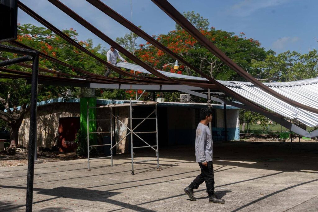 Mérida, Yucatán, 15 de julio de 2025.– En atención a la solicitud de madres y padres de familia, el Gobierno del Estado, a través de la Secretaría de Educación de Yucatán (Segey), lleva a cabo el retiro total del domo metálico instalado en la escuela primaria Francisco Sarabia, ubicada en la comisaría meridana de Noc-Ac, luego de que colapsara parcialmente.