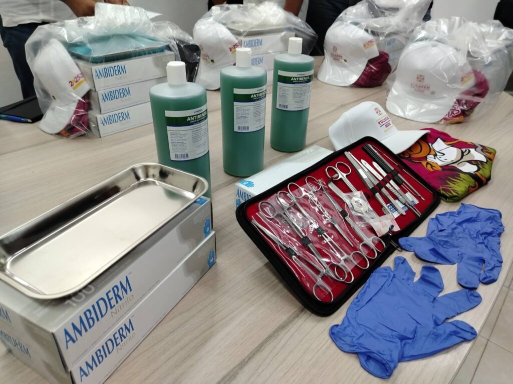 Los equipos entregados incluyen estuches con 20 piezas (tijeras, pinzas, porta agujas, entre otros), bandejas médicas, cajas de guantes de nitrilo y jabón quirúrgico, asegurando que las y los profesionales puedan desempeñar sus labores de manera efectiva y proteger la salud del ganado.