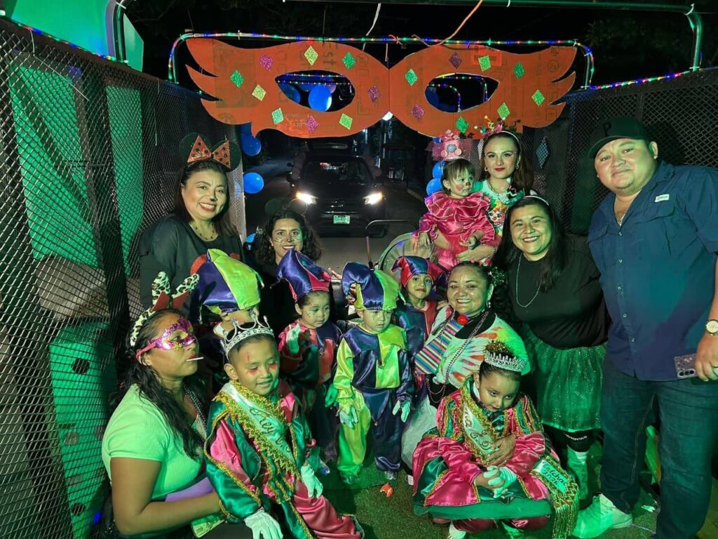 La celebración alcanzó uno de sus momentos más esperados con la coronación de Isabella I y Asiel I, soberanos infantiles que conquistaron al público con su simpatía y entusiasmo. Bajo la temática “Fantasía, alegría y máscaras”, la fiesta se llenó de música y movimiento gracias a una coreografía cuidadosamente montada por las maestras Lizbeth Cetina y Andrea Centeno.